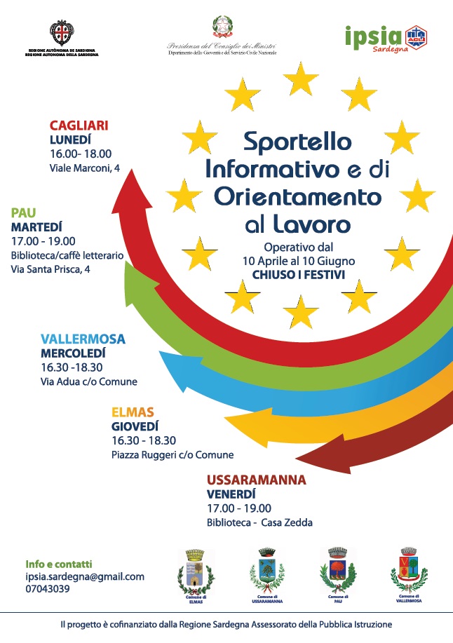 IPSIA Sardegna, nell'ambito del Progetto "Promuoviamoci", finanziato dall'Assessorato Regionale della Pubblica istruzione attraverso il Bando aggregazione giovanile, lancia lo Sportello informativo e di orientamento al lavoro itinerante.